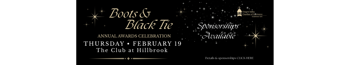 Here's to another year of business success!Come join us as we award our Business of the Year, Non Profit of the Year, Chamber Member of the Year, and Presidential Merit honorees.
