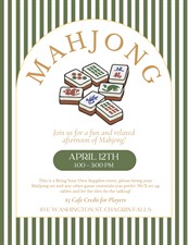 Join us for a fun and relaxed afternoon of Mahjong! Whether you’re a seasoned player or still learning the ropes, this is the perfect opportunity to gather with friends, meet fellow players, and enjoy a few hours of friendly competition.